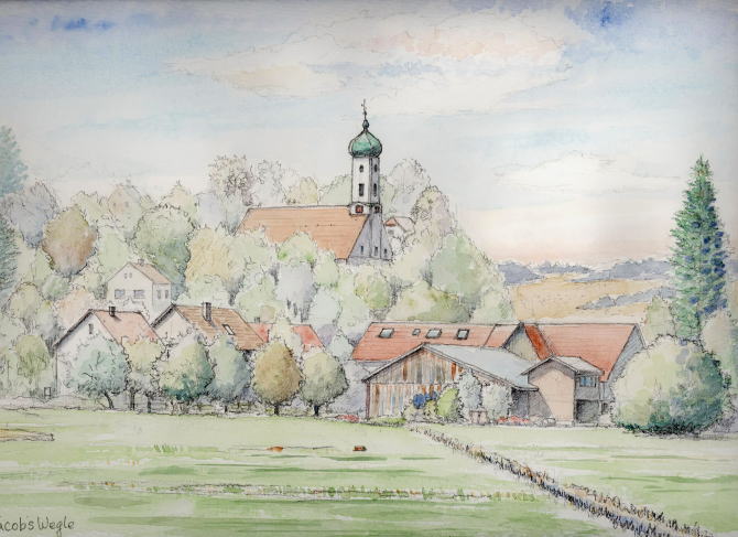 | 巡礼の村 この絵の右手にJacobsweg(ミニ巡礼の道)がある |
