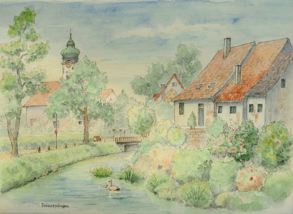大河の始まり Donaueschingen ドナウ川に続く 白鳥が泳いでいた。ここのすぐ近くに有名な湧水池があります |