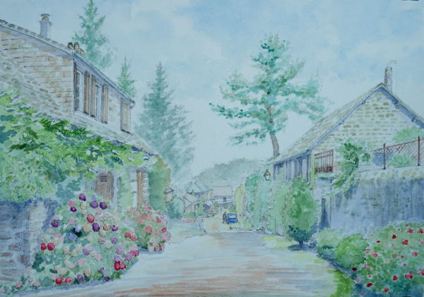 ”アジサイの咲く頃” St.Ceneri le Gerei 美しい村 サン・セヌリ・ル・ジェレ 教会への道に立ってスケッチ 居心地が大変良い美しい村 アジサイの花が村のあちこちで 色鮮やかに咲いていました。 石造りの時代を経た家が 道沿いに建ち、自然の風景 の中に溶け込んで、長閑で懐かしい 雰囲気を醸し出していました |